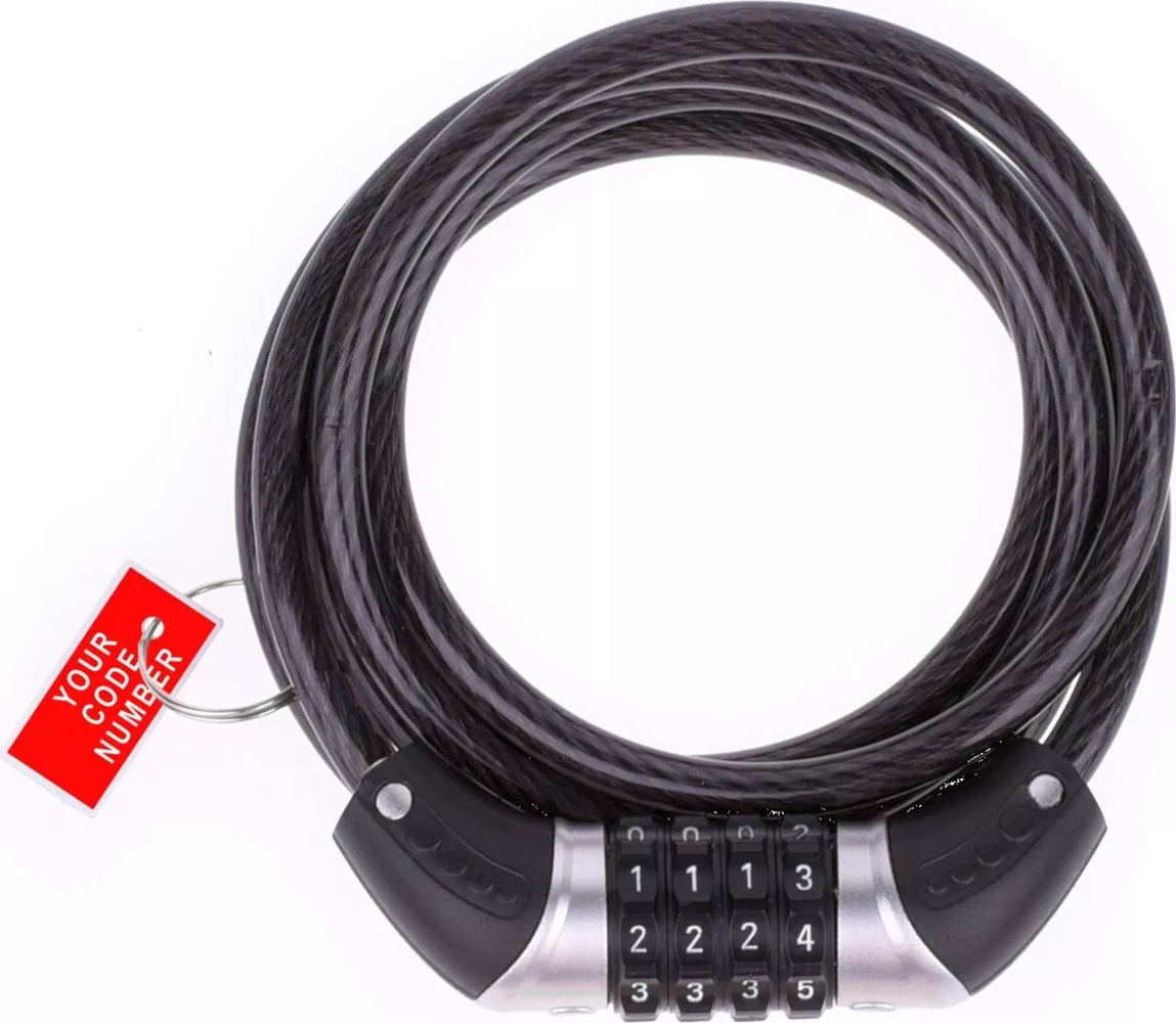 Zapięcie rowerowe cypher składa się z długiej, stalowej linki, które pozwala zabezpieczyć rower przed kradzieżą.