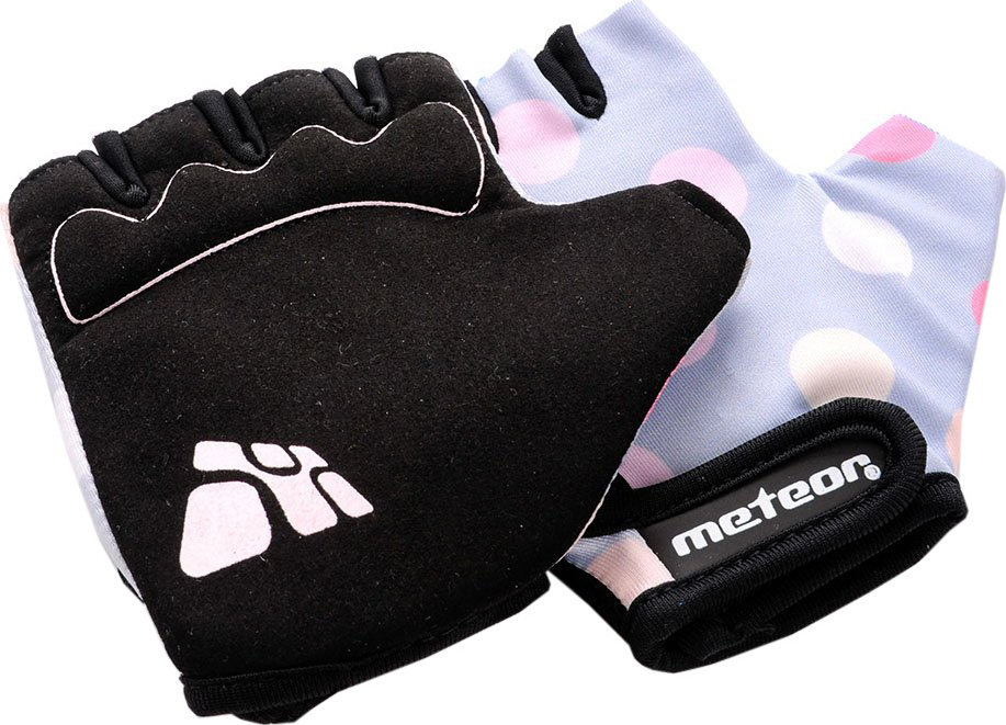 Rękawiczki rowerowe dla dzieci Meteor szare w kropki 23371-23373-23372
