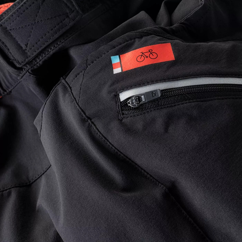 Ponadto spodenki posiadają odblaskowe elementy podnoszące bezpieczeństwo na drodze po zmroku.