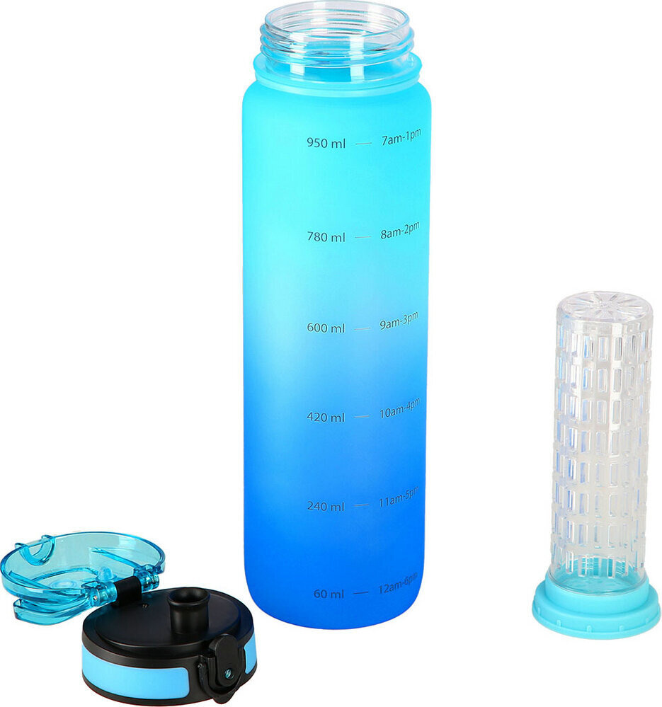 Dzięki znajdującej się na tylnej ścianie butelki przedziałce możemy monitorować na bieżąco poziom naszego nawodnienia.