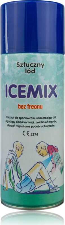 Icemix to bezpieczny dla skóry zamrażacz, sztuczny lód, który momentalnie obniża temperaturę ciała w miejscu urazu, dzięki czemu nie dopuszcza do tworzenia się krwiaków oraz sińców, a także niweluje ból