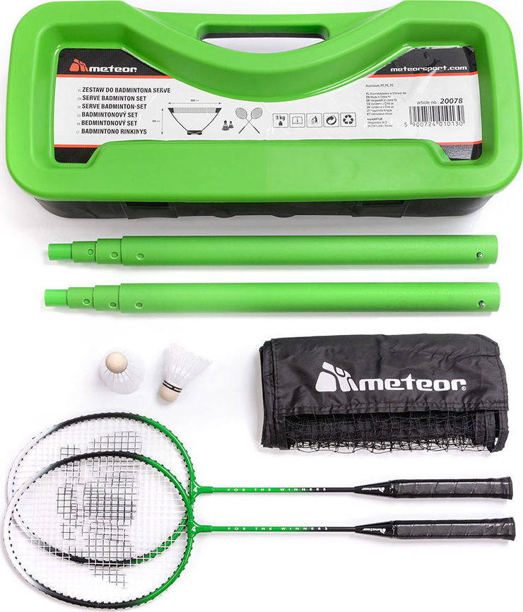 Zestaw do badmintona 2 x rakieta 2 x lotka, siatka Meteor 20078