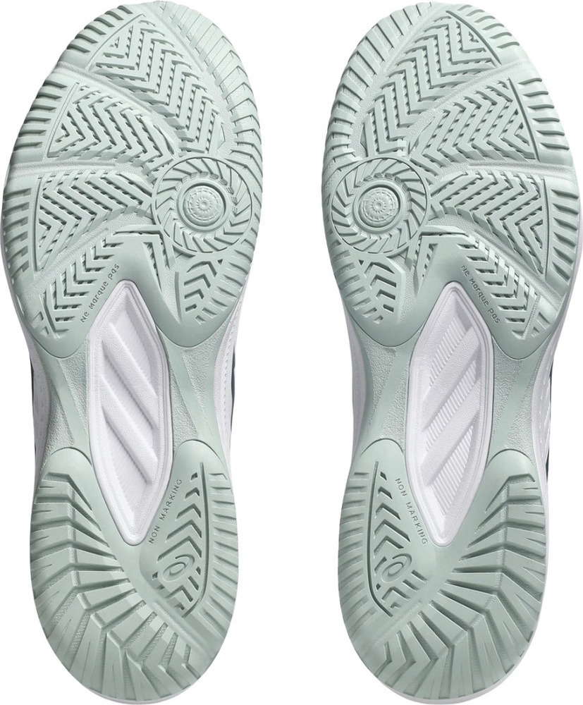 Środkowa podeszwa z pianki EVA absorbuje wstrząsy w fazie lądowania i wybicia, a zewnętrzna kauczukowa warstwa zapewnia przyczepność i zaskakującą zwrotność podczas manewrów na hali, nie pozostawiając przy tym śladów na parkiecie.