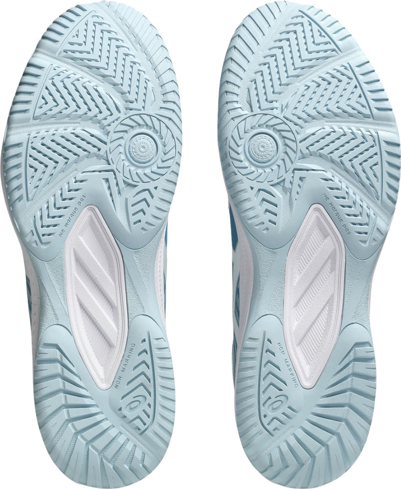 Środkowa podeszwa z pianki EVA absorbuje wstrząsy w fazie lądowania i wybicia, a zewnętrzna kauczukowa warstwa zapewnia przyczepność i zaskakującą zwrotność podczas manewrów na hali, nie pozostawiając przy tym śladów na parkiecie.