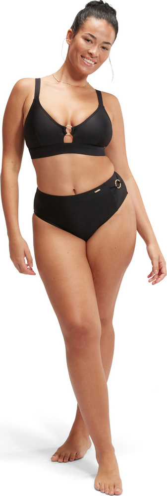 Zaprojektowany z szerokim paskiem pod biustem dla wygody, top jest wykończony złotym pierścieniem z przodu i zawiera wyjmowane wkładki dla wsparcia.