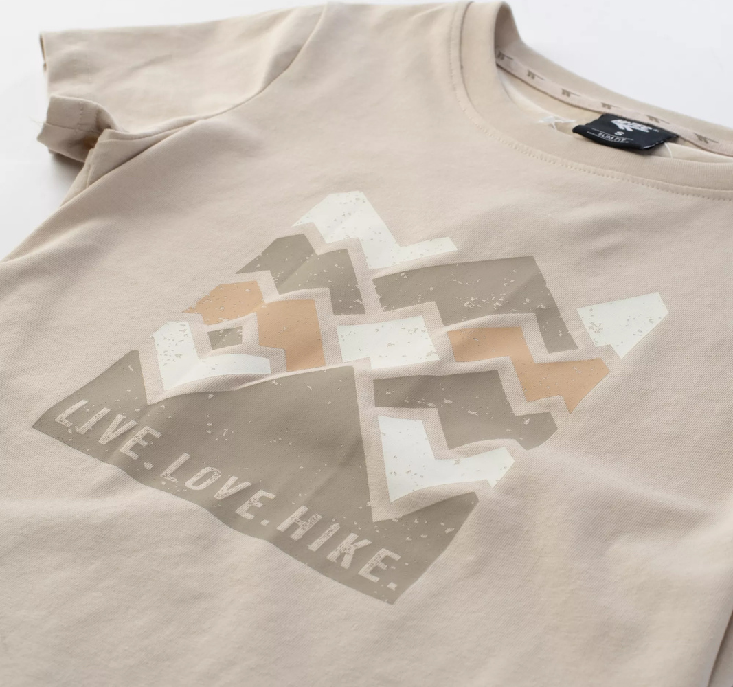 Na jednolitym tle umieszczono ciekawą grafikę z motywem górskim.