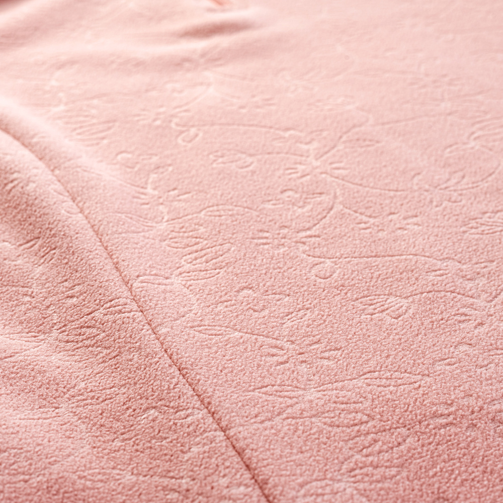 Uwagę zwraca piękny tłoczony kwiatowy wzór.