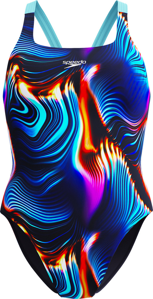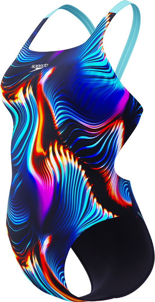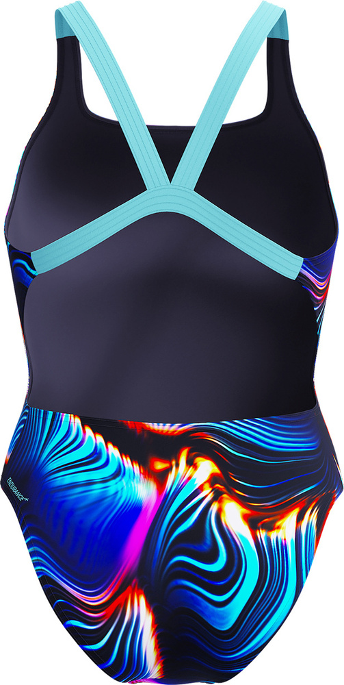 Strój kąpielowy leaderback z przyciągającym wzrok nadrukiem pozwala na swobodne pokonywanie bloków treningowych.