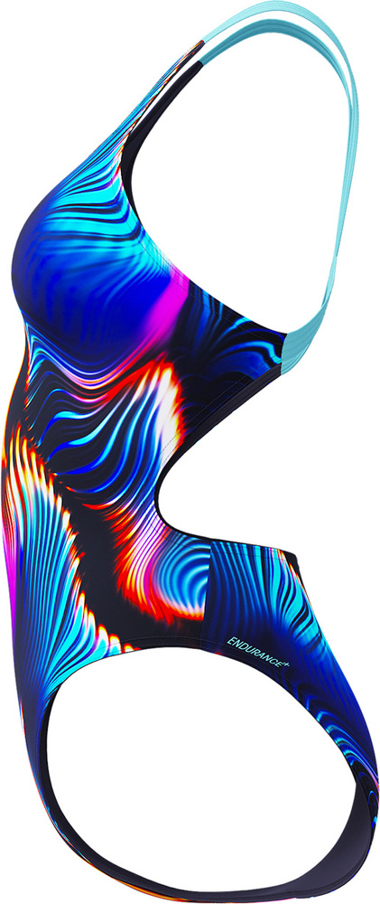 Strój kąpielowy leaderback z przyciągającym wzrok nadrukiem pozwala na swobodne pokonywanie bloków treningowych.