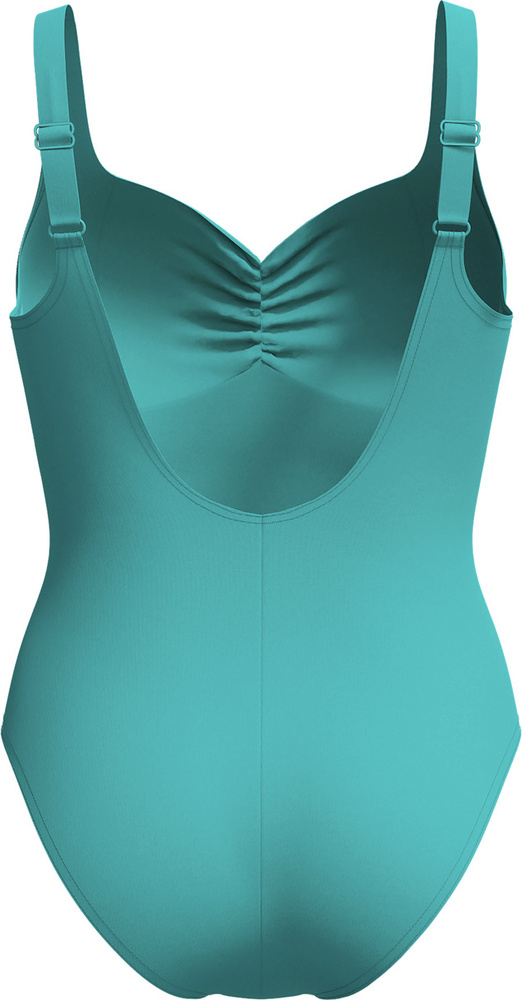 Klasyczny strój kąpielowy aquanite subtelnie modeluje sylwetkę dzięki delikatnym marszczeniom i miękkiemu dekoltowi w kształcie litery v.