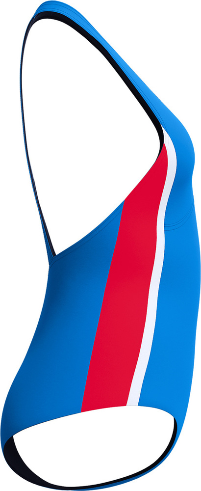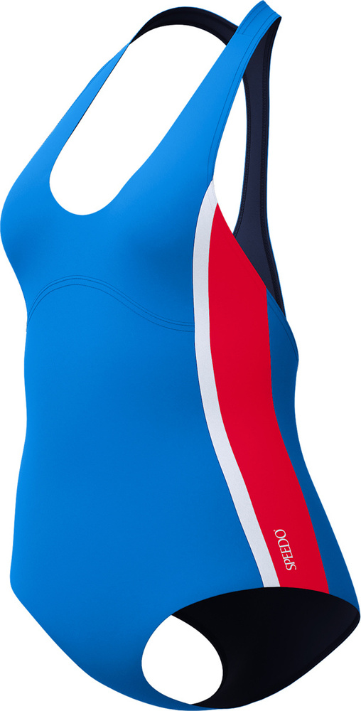 Klasyczny kostium boyleg z kolorowymi panelami inspirowanymi archiwami projektów speedo.