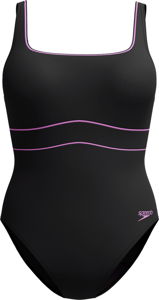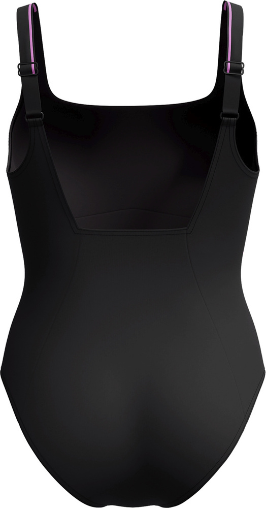 Sportowy strój kąpielowy contour eclipse łączy klasyczny, prostokątny dekolt z przyciągającym wzrok nadrukiem cyfrowym, który optycznie wysmukla sylwetkę i kieruje wzrok ku górze.