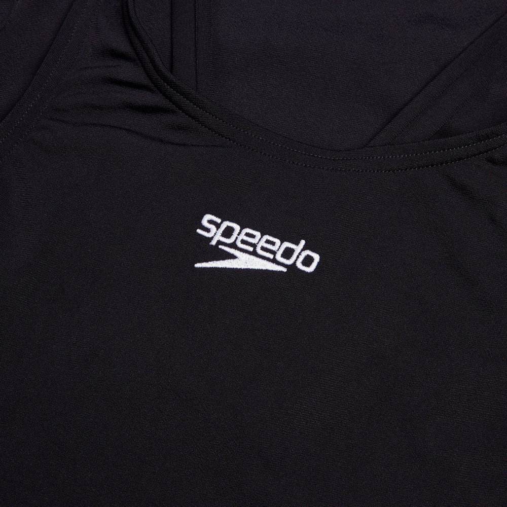 • endurance+: tkanina odporna na chlor, szybko schnąca, wykonana w 100% z materiałów pochodzących z recyklingu • wysokie pokrycie klatki piersiowej i pleców dla opływowego kroju • lekkie wsparcie biustu dzięki klasycznej podszewce pod biustem, która utrzymuje biust w miejscu • wysoki stan nogawek • podszewka pod biustem, podszewka w kroku