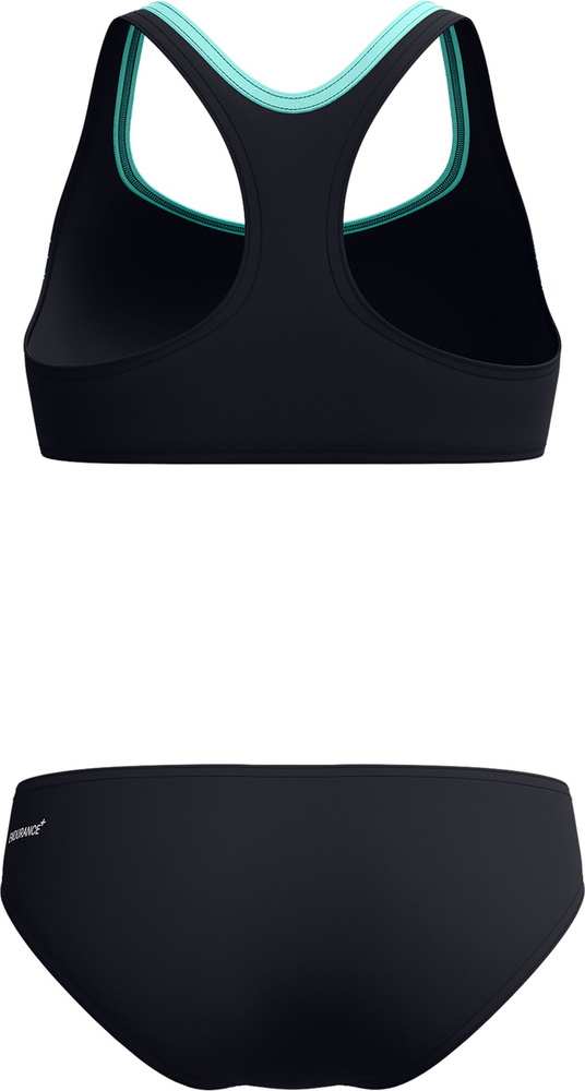 Projekt z plecami typu racerback wspiera pełen zakres ruchów ramion, co umożliwia dynamiczny trening. ściągacz w pasie zapewnia bezpieczne dopasowanie, a szybkoschnąca tkanina endurance+ gwarantuje dużą trwałość i wysoką odporność na chlor.