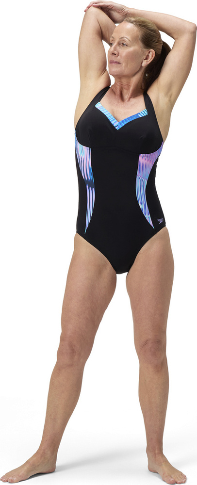 Strój został zaprojektowany z użyciem odpornej na chlor tkaniny lycra® xtra life™.