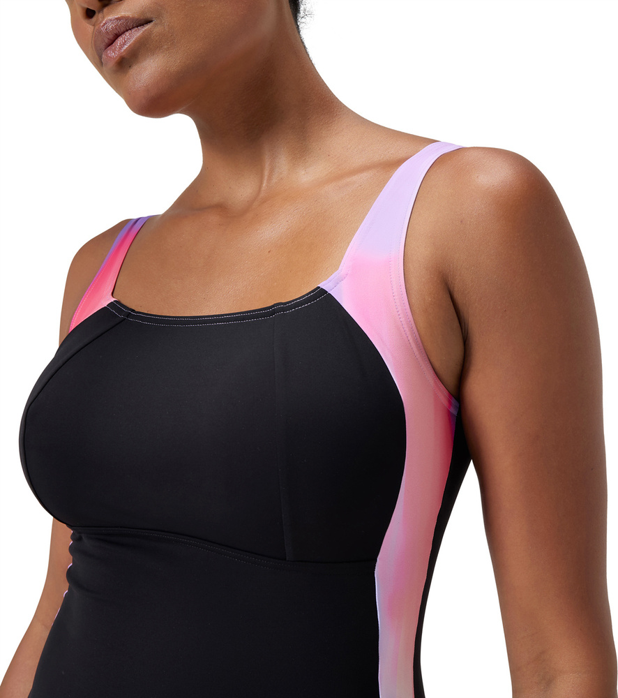 • shape comprex: przędza nylonowa wykonana w 100% z odpadów przedkonsumpcyjnych, takich jak odpady materiałowe z fabryk, z wyższą odpornością na chlor, dzięki lycra® xtra life™, która jest dwa razy trwalsza od standardowych tkanin do strojów kąpielowych, połączoną z innowacjami w zakresie odzieży modelującej• modelowanie całego ciała zapewnia wsparcie tam, gdzie jest to potrzebne, nie rezygnując z komfortu• średnie wsparcie biustu dzięki tkaninie modelującej i szwom, które wspierają i podkreślają biust• regulowane ramiączka zapewniają idealne dopasowanie