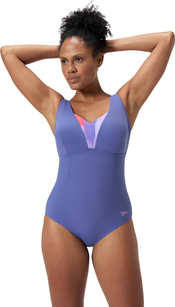 Kostium wykonany jest z materiału ultraodpornego na chlor lycra® xtra life™, który trwa dwa razy dłużej niż standardowe tkaniny kąpielowe.