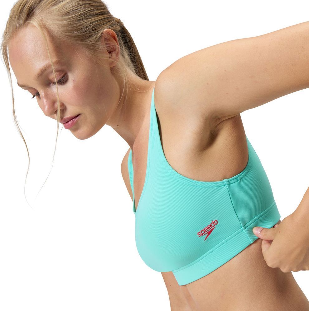• wykonany z przędzy nylonowej z recyklingu o prążkowanej fakturze• góra i dół w pełni podszyte z przodu i z tyłu dla większego komfortu i lepszego krycia przy jasnych kolorach• wysokie wycięcia na nogi