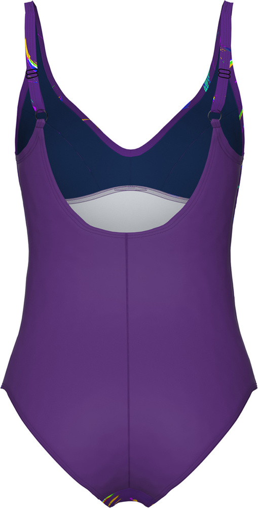 Regulowane ramiączka oraz wbudowany biustonosz gwarantują indywidualne dopasowanie, a wycięcie u back zapewnia pełną swobodę ruchu.