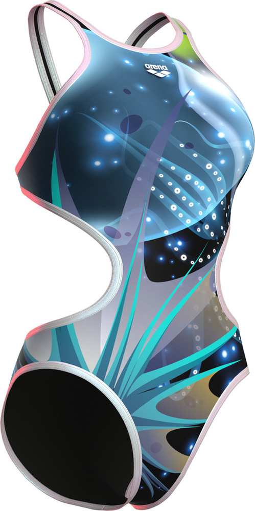 Strój kąpielowy damski arena one printed to zaawansowany model stworzony z jednego kawałka materiału, bez bocznych szwów, co zapewnia idealne dopasowanie i minimalizuje ryzyko otarć.