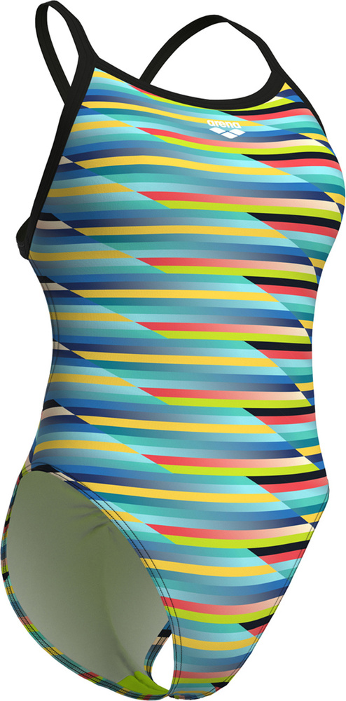 Klasyczny fason z odważnymi, wielokolorowymi paskami przyciąga wzrok, a wysokie wycięcie na nogi i krój xcross podkreślają sylwetkę i zapewniają pełną swobodę ruchu w wodzie.