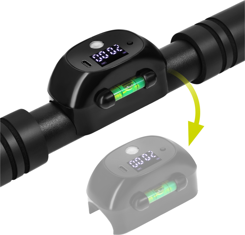 - Wbudowana poziomica pozwala szybko wypoziomować drążek i zapobiega nierównemu montażowi.
