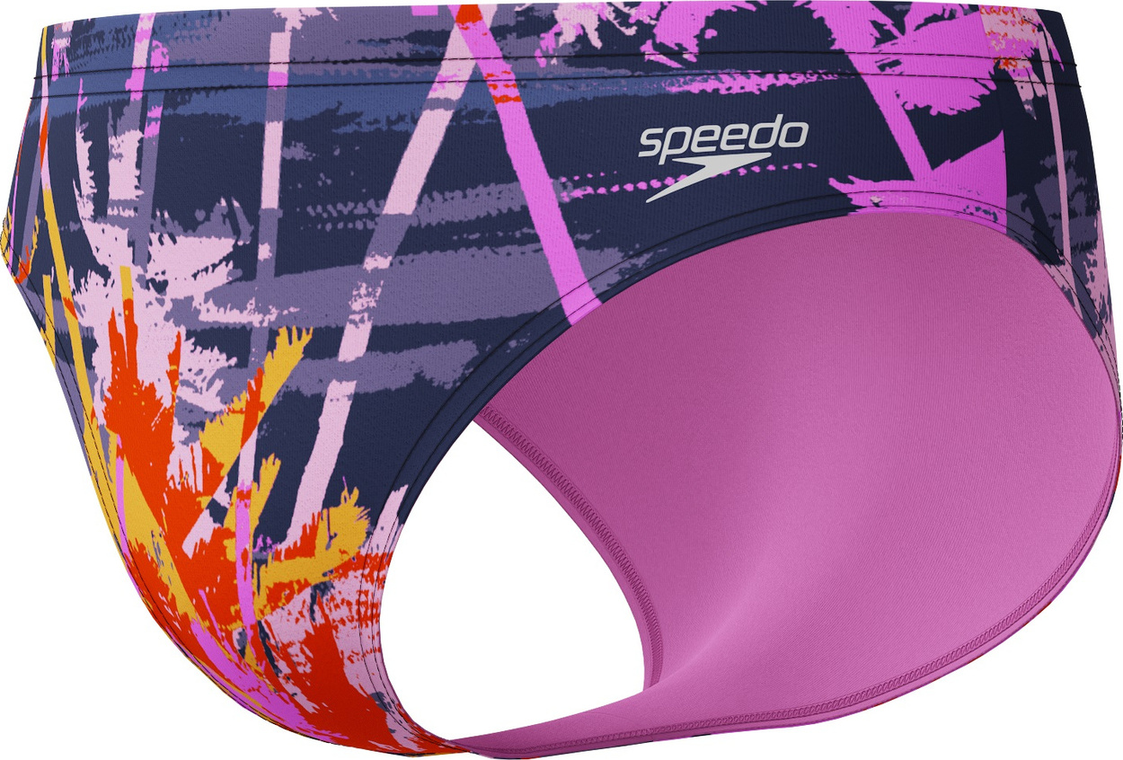 Kąpielówki z nadrukiem zapewniają wyjątkową swobodę ruchów przy każdym kopnięciu.