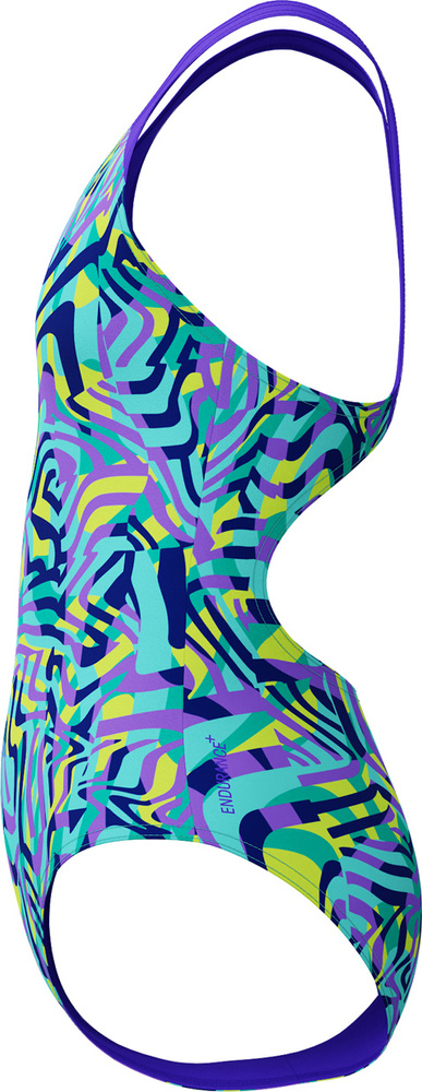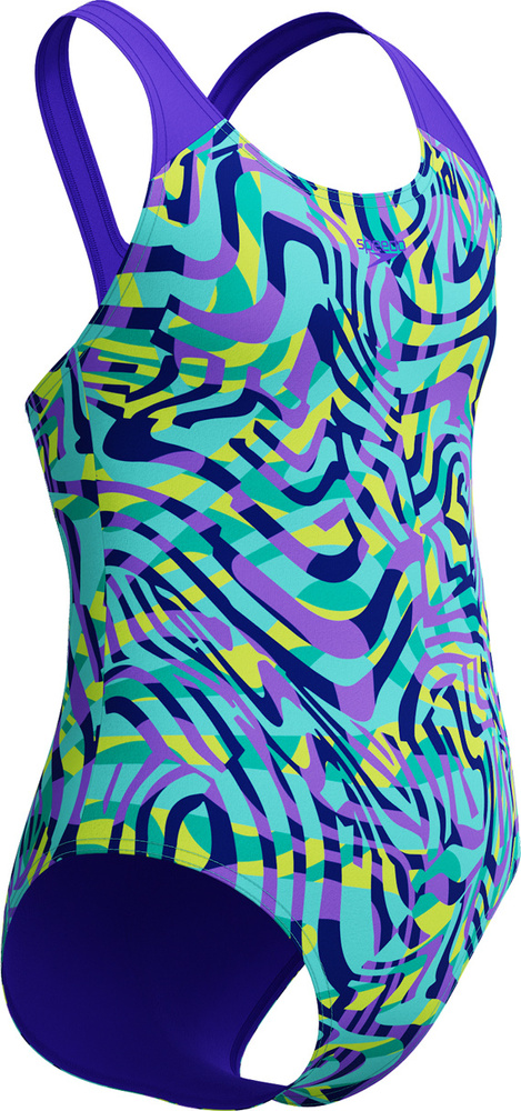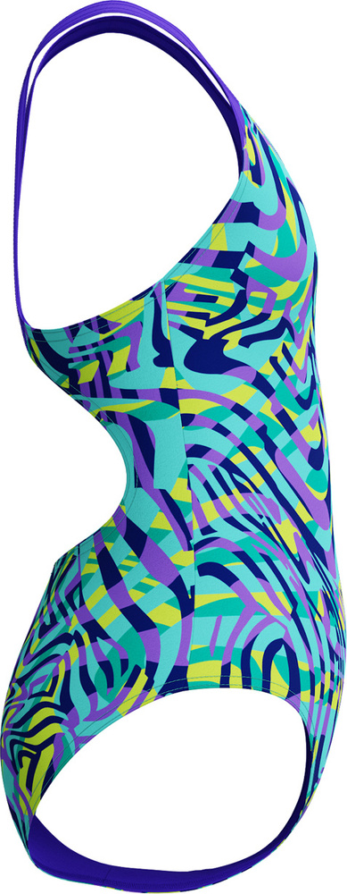 Wygodny fason typu splashback z ramiączkami odsuniętymi od ramion zapewnia swobodę ruchów w wodzie.