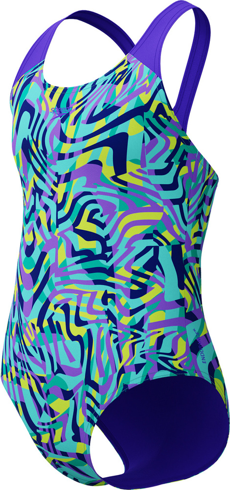 Wprowadź odrobinę energii na lekcje pływania dzięki temu strojowi, który odznacza się abstrakcyjnym wzorem.