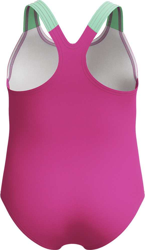 Wygodne szelki typu racerback dobrze trzymają się na miejscu, niezależnie od tego, czy mali pływacy pluskają się w basenie, czy kopią w piasku.
