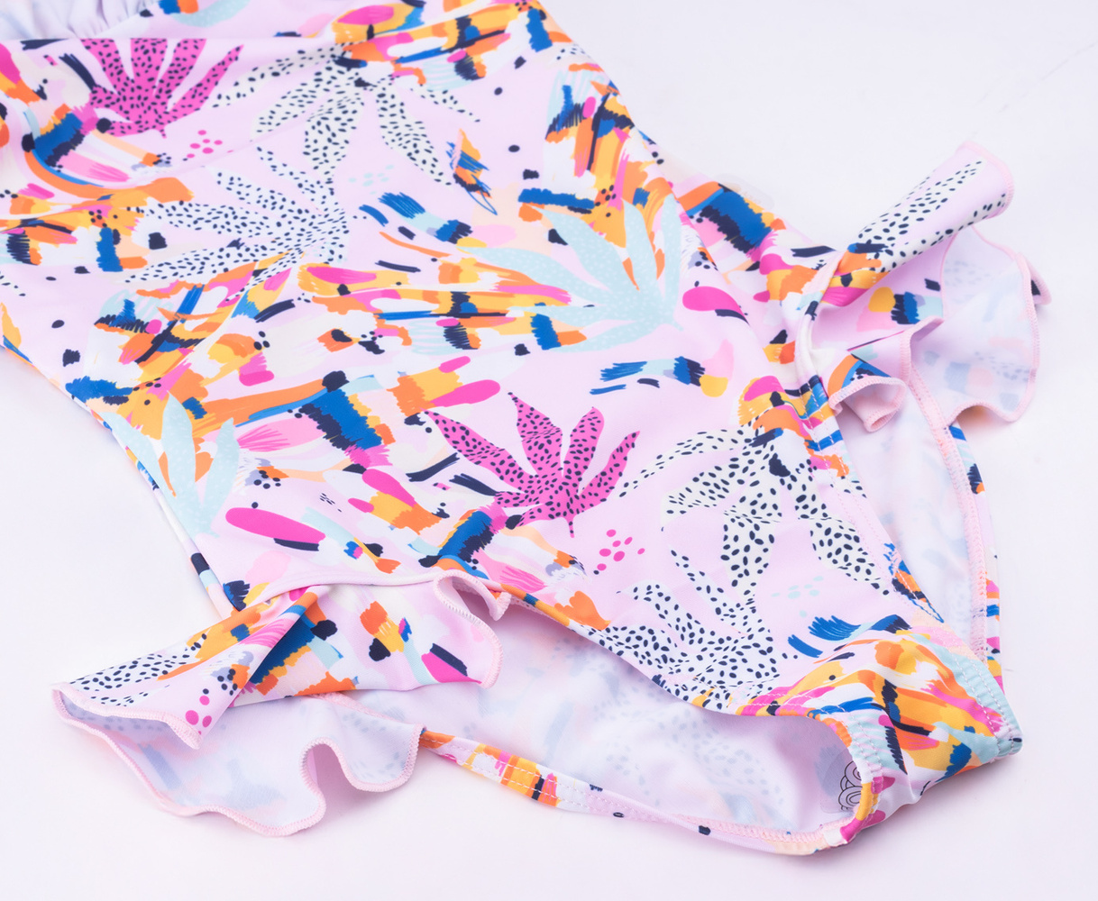 Falbanki umieszczone na ramiączkach i na dole stroju dodają uroku verona kids.