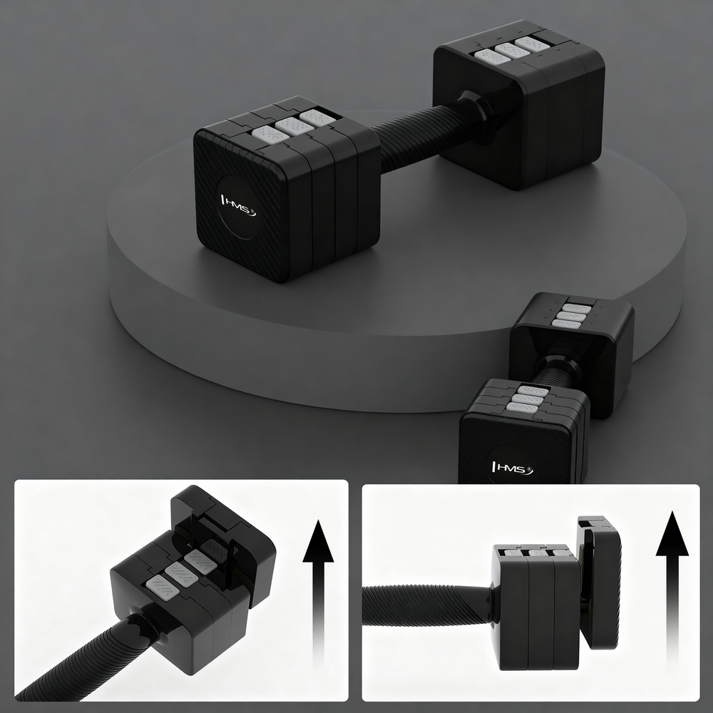Podkręć trening fitness dzięki HL02 HMS – to regulowane hantle 2 × 5 kg z błyskawiczną, parosekundową zmianą wagi, antypoślizgową rękojeścią i stabilnym, kwadratowym kształtem.