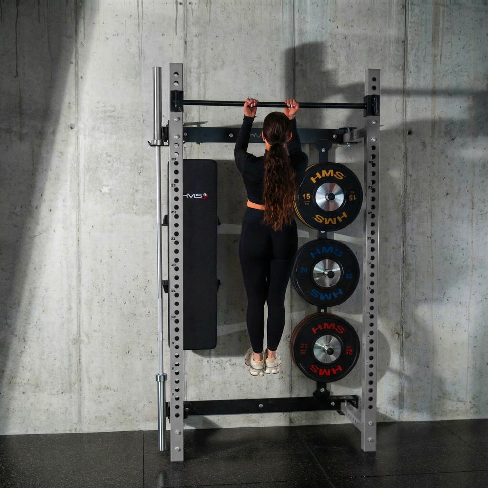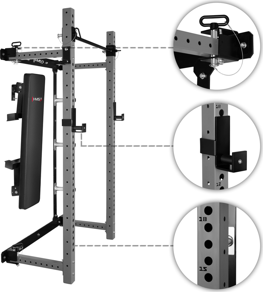 Klatka treningowa KLT34 HMS Fitness została zaprojektowana z myślą o domowych siłowniach, w których liczy się przestrzeń i funkcjonalność.