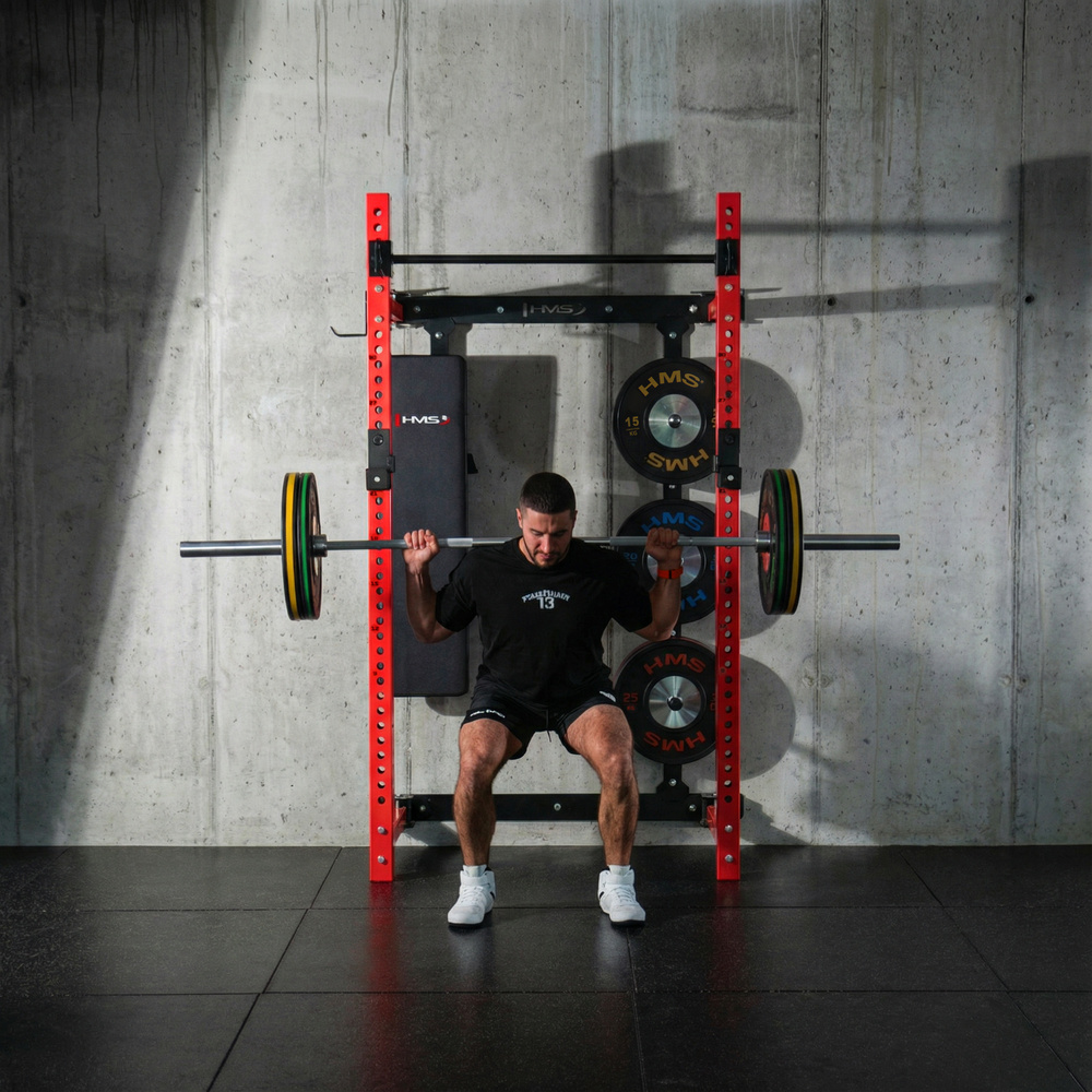 Solidna stalowa konstrukcja klatki KLT34 HMS Fitness została zaprojektowana z myślą o intensywnym treningu siłowym: