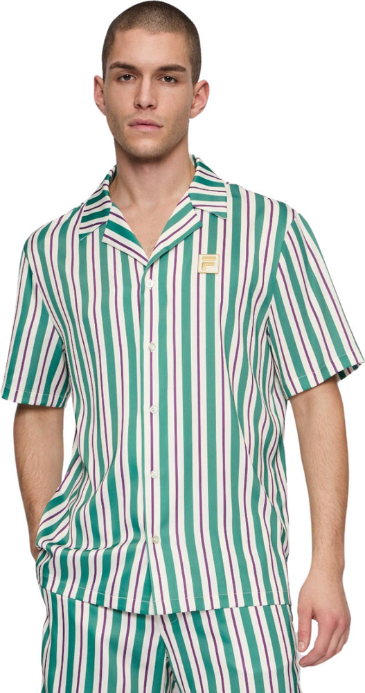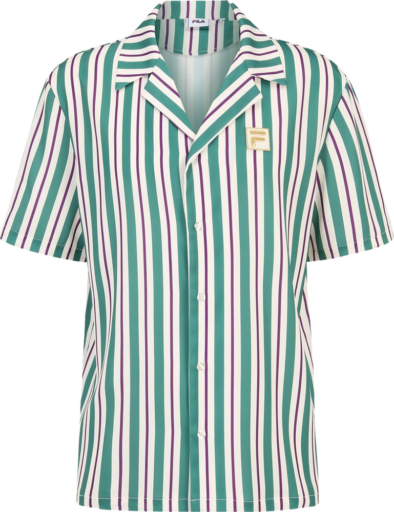 Szybkoschnący materiał zyskał satynowe wykończenie. Zapinana na guziki koszula zyskała estetyczne wykończenie w postaci kołnierzyka i haftowanego logo Fila F-box na piersi.