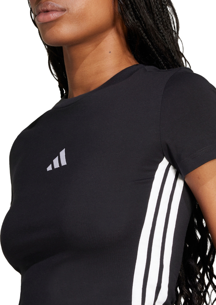 Koszulka damska adidas Essentials 3-Stripes Slim Baby czarno-biała JC8325