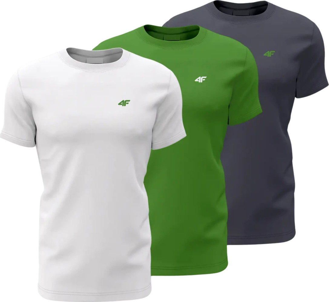 Koszulka męska 4F M1895 3pak granatowa, zielona, biała 4FWSS24TTSHM1895 90S