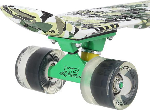 Pennyboard Art Moro Nils Extreme charakteryzuje się nowatorskim designem nawiązującym do motywów militarnych.