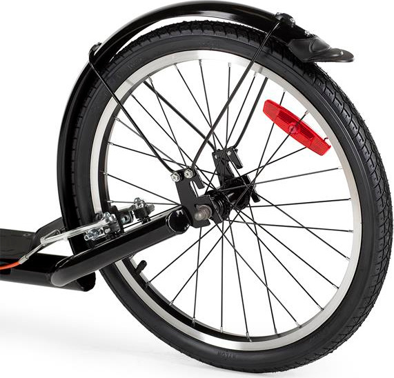 Jej bardzo duże pompowane koła sprawiają, że nie trudno pomylić ją z rowerem.