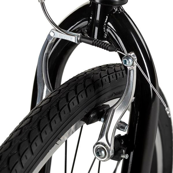 Efektywne i bezpieczne hamowanie zapewnia natomiast stalowy hamulec V-brake zamontowany z przodu i z tyłu.
