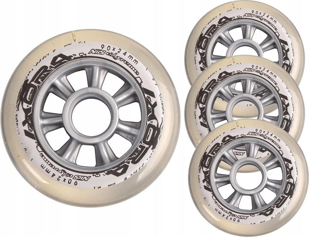 Zestaw kółka Nils Extreme PU 90x24 mm 82A przezroczyste 4 sztuki