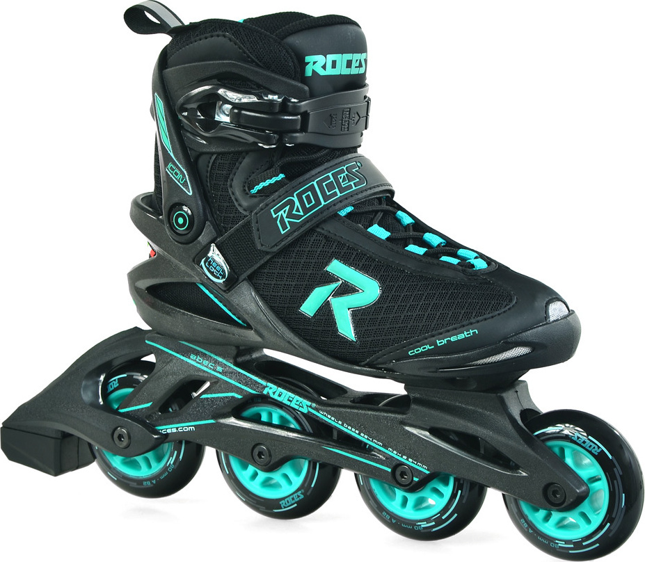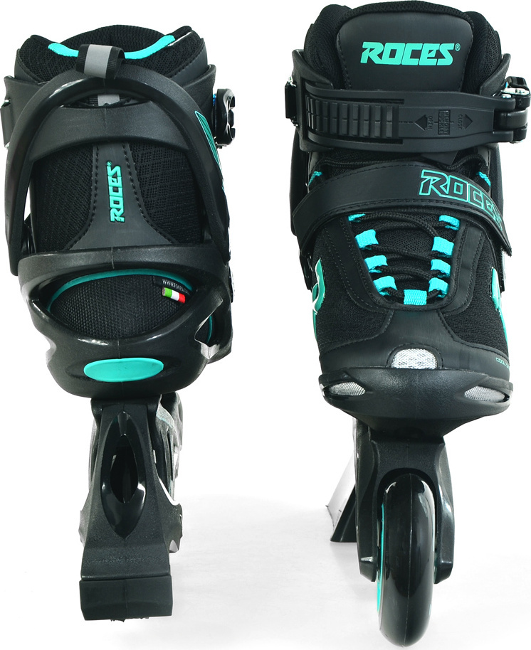 Rolki damskie Roces w kolorze czarnym, z turkusowymi akcentami to produkt przeznaczony do jazdy rekreacyjnej i fitness.