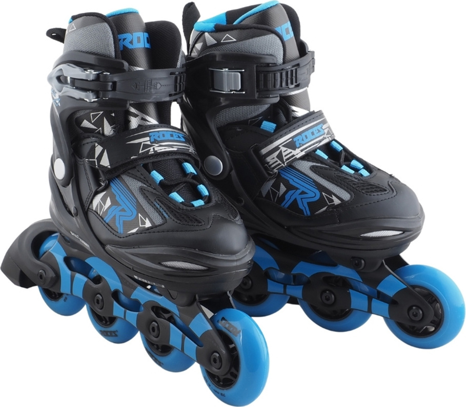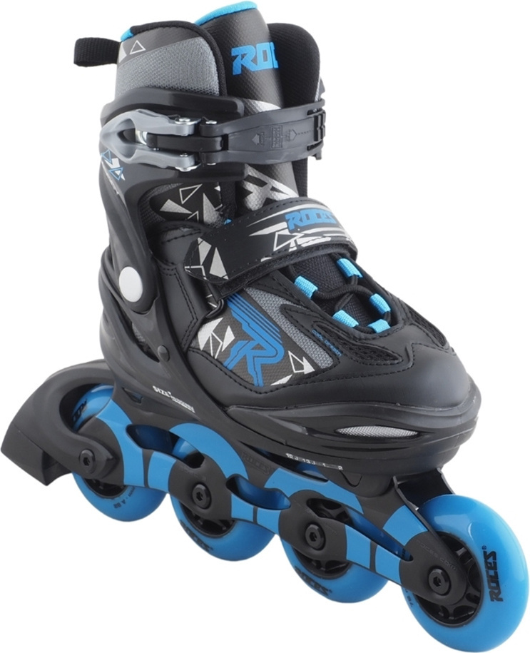 Łyżworolki regulowane dla dzieci i młodzieży Roces polecane są dla średnio zaawansowanych i zaawansowanych użytkowników, którzy opanowali technikę jazdy. Wytrzymała konstrukcja buta i ramy wsparta systemem Growth Compensator daje możliwość regulacji rozmiaru za pomocą specjalnego przycisku znajdującego się w tylnej, dolnej części buta. Wysoka cholewka. But zewnętrzny wykonano z wysokiej jakości polipropylenu wzmocnionego włóknem szklanym, a ramę z formowanego aluminium. 3-stopniowe zapięcie z klamrą Hell Lock. But wewnętrzny z anatomiczną wkładką zyskał system Cool Breathe odpowiadający za naturalną wentylację stóp. Kółka tzw. kauczukowe osadzono na łożyskach ABEC-3.