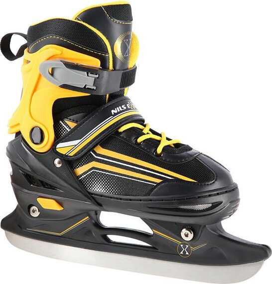 Łyżwy NH18190 Nils Extreme, charakteryzują bardzo dobre właściwości jezdne. Jest to zasługą płóz, wykonanych z wysokogatunkowej stali nierdzewnej oraz wielouchwytowego systemu zapięć, składającego się z paska na rzep, klamry i sznurowadeł, pewnie trzymającego stopy. Wszystko to sprawia, że model ten sprawdza się dobrze w każdych warunkach, dostarczając niepowtarzalnych wrażeń z jazdy.