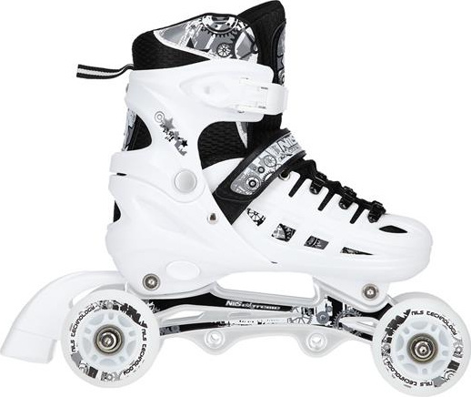 NH10905 Set Nils Extreme to łyżwy przeznaczone dla pasjonatów jazdy. Produkt oferuje 4 możliwości konfiguracji. Są to: łyżwy, łyżworolki, wrotki oraz rolko-wrotki. Rolki robią niezwykłe wrażenie, dzięki świecącym kólką.