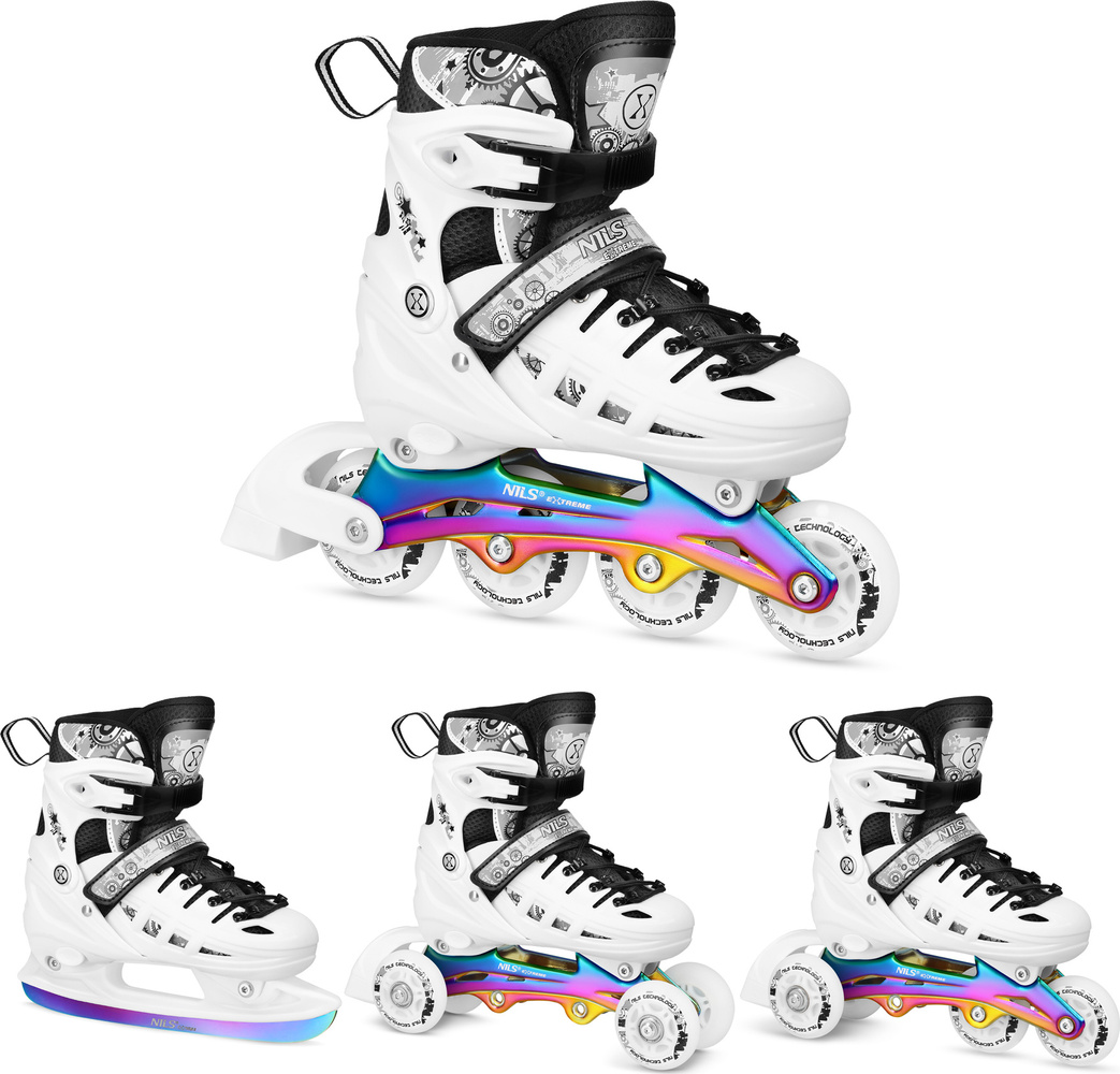 Łyżworolki, wrotki, łyżwy hokejowe, wrotko-rolki świecące LED z wymienną płozą 4w1 Nils Extreme NH10905 rozmiar M 35-38