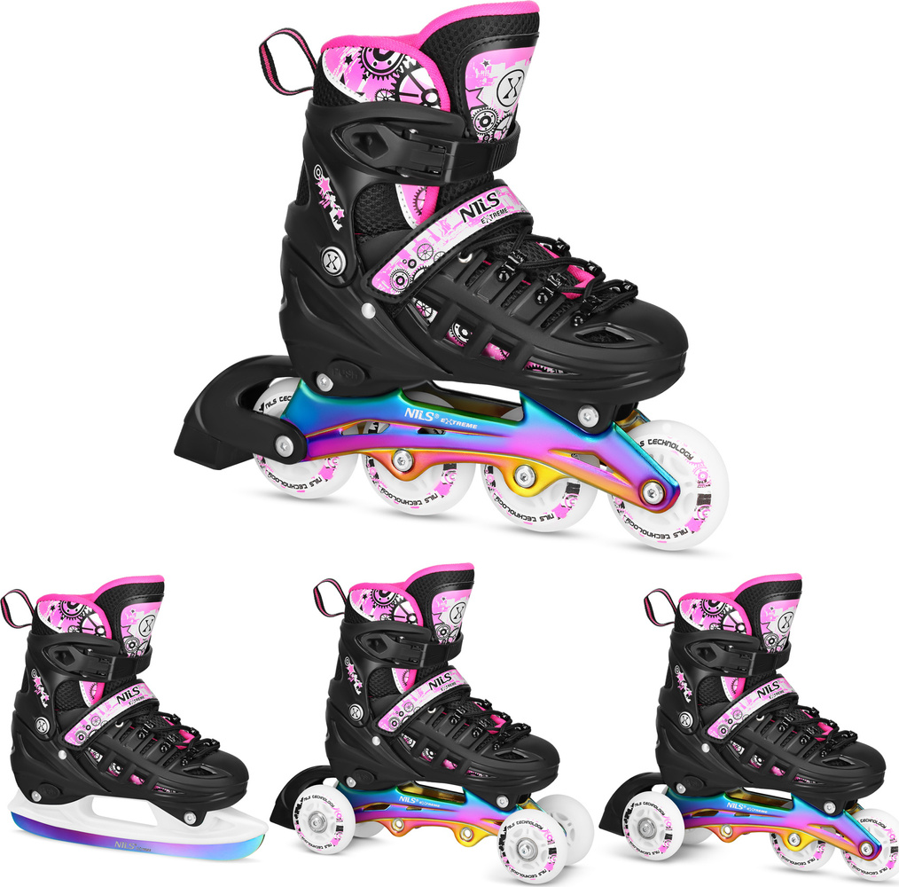 Łyżworolki, wrotki, łyżwy hokejowe, wrotko-rolki świecące LED z wymienną płozą 4w1 Nils Extreme NH10905 rozmiar M 35-38