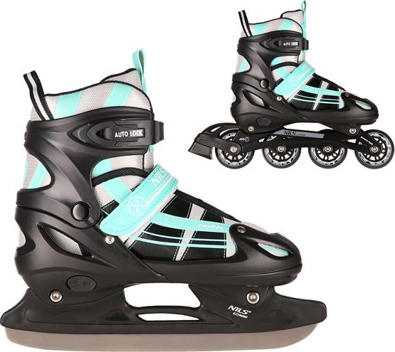 Łyżworolki z wymienną płozą hokejową 2w1 łyżwy rolki Nils Extreme NH18366a rozmiar S (31-34) czarno-turkusowe