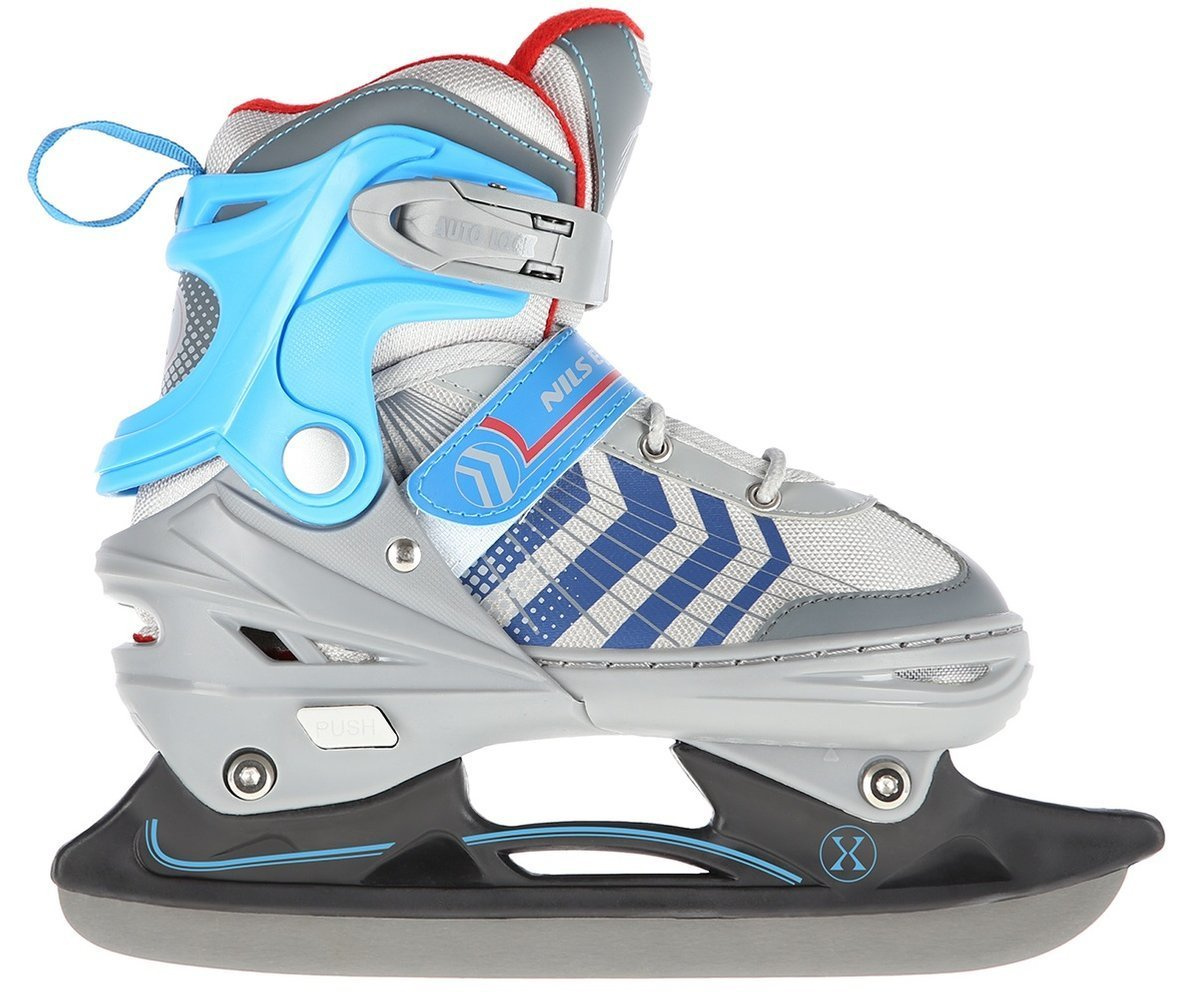 Łyżwy NH18192 Nils Extreme, charakteryzują bardzo dobre właściwości jezdne. Jest to zasługą płóz, wykonanych z wysokogatunkowej stali nierdzewnej oraz wielouchwytowego systemu zapięć, składającego się z paska na rzep, klamry i sznurowadeł, pewnie trzymającego stopy. Wszystko to sprawia, że model ten sprawdza się dobrze w każdych warunkach, dostarczając niepowtarzalnych wrażeń z jazdy.