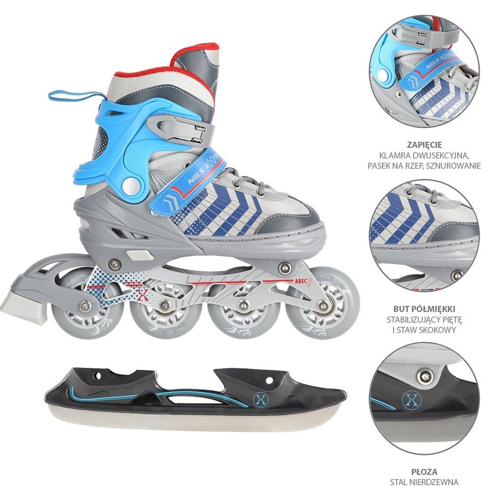 Łyżworolki z wymienną płozą hokejową rolki wrotki 4w1 Nils Extreme NH18192 rozmiar L 39-43)